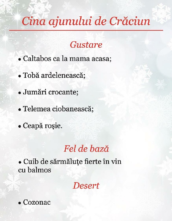 Intampinarea oaspetilor cu produse specifice sfintei sarbatori a Craciunului.